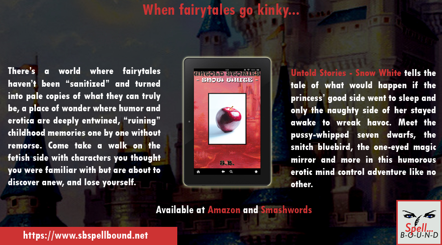 When fairy-tales go kinky (and silly), madness ensues. Untold Stories: Snow White is the most unexpected re-telling of the classic fairy-tale you can ever hope to find. Sometimes, good girls go bad but that’s when the juicy stuff happens. 11000 words where humor and erotica go hand in hand waiting to make you laugh and drain your mind away. You can read the first segment here on Spell… B-O-U-N-D. Patrons of the site already had a chance to read it all.